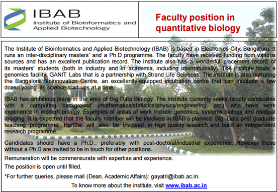 M.Sc. in any branch of Life Sciences. Desirable: Ph.D. and three years